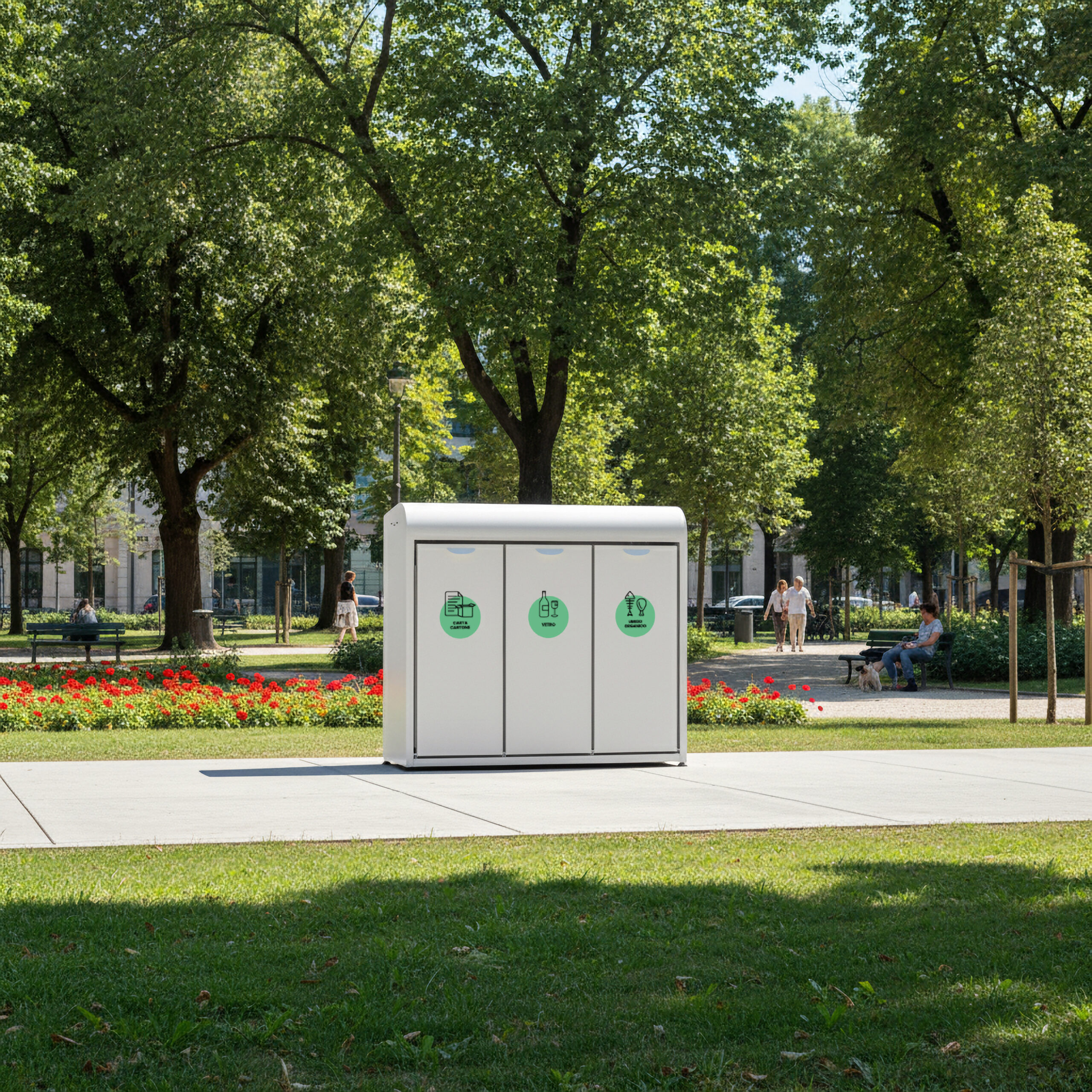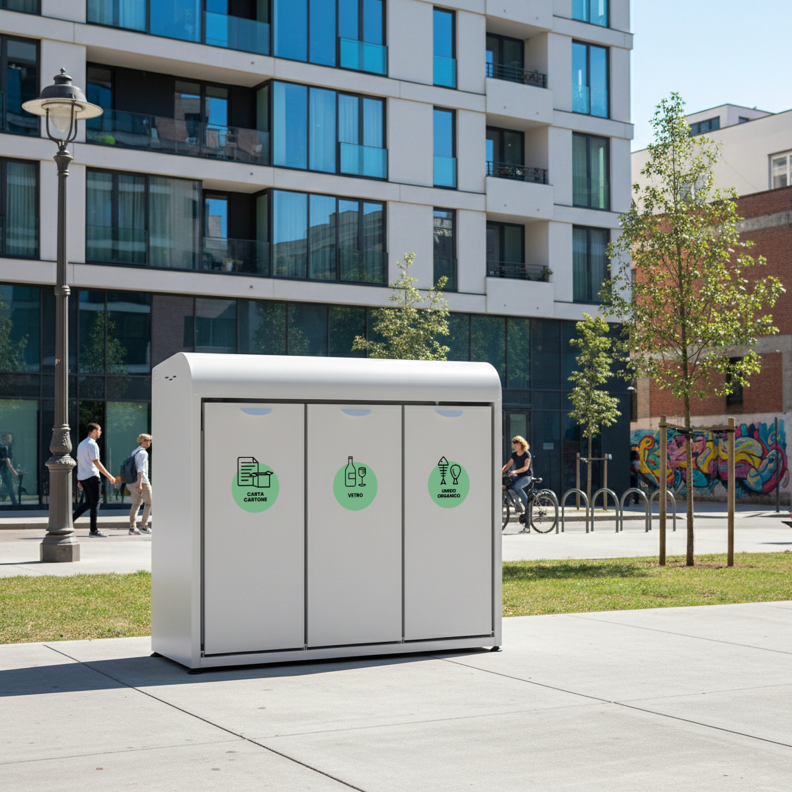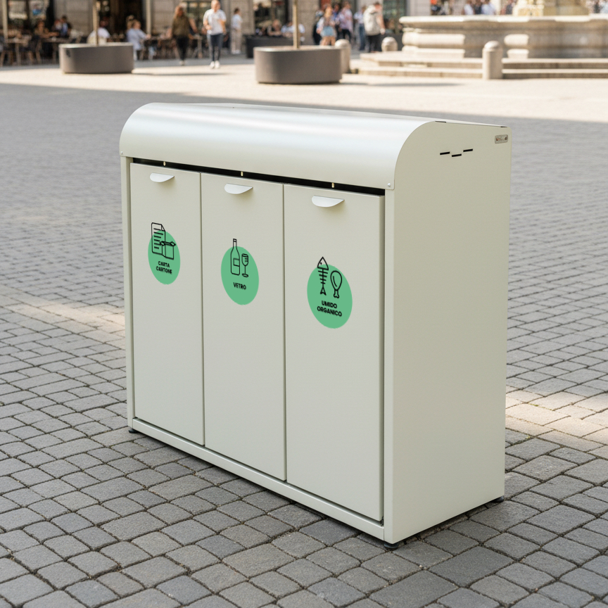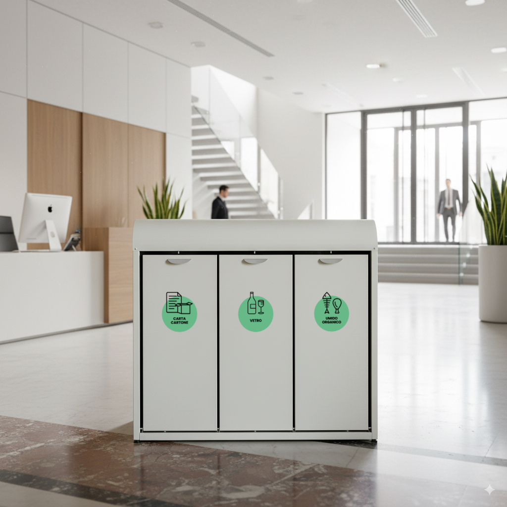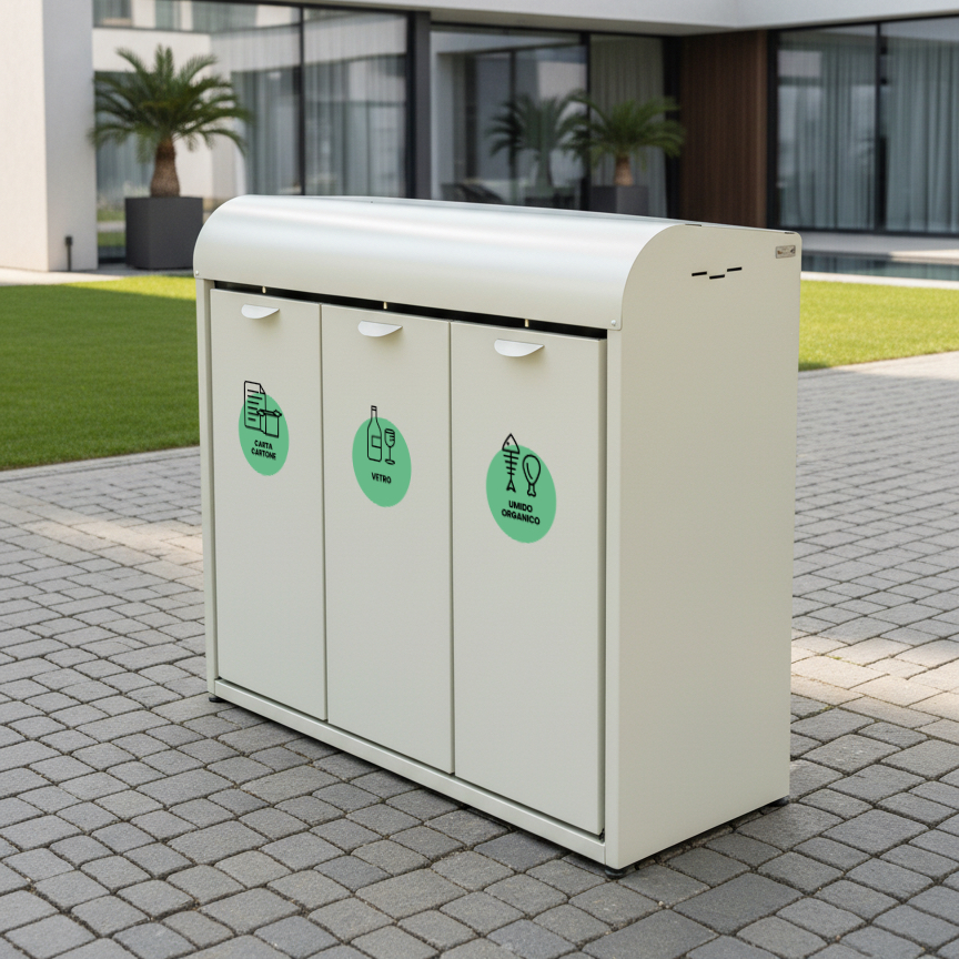 In questo modo puoi differenziare più materiali nello stesso modulo, ad esempio plastica e lattine, carta e cartone, o secco e umido senza rinunciare a ordine e capienza.
